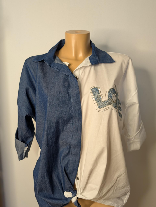 💙 Chemise Love – Bicolore Jeans & Blanche – Taille 36/42