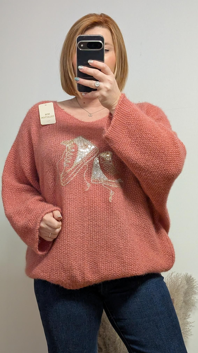 Ref P010 pull converse rose des bois taille unique 46/52