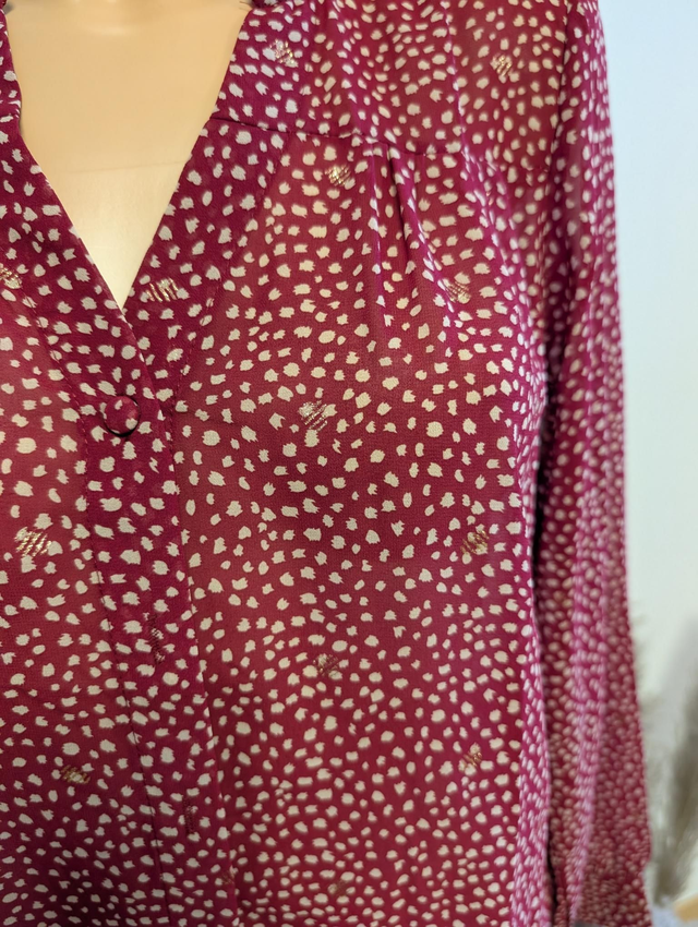 Laissez-vous séduire par la chemise Lola, au tissu fluide façon voile et à la couleur bordeaux rehaussée de délicates touches dorées. Chic et féminine, elle s’adapte aussi bien à une tenue de journée qu’à une soirée élégante.