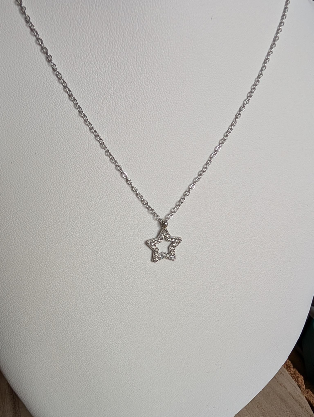 Collier Argenté en Acier Inoxydable – Pendentif Étoile avec Strass ✨⭐