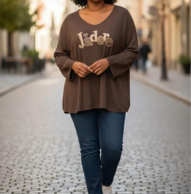 Le pull J’adore est une pièce cocooning et féminine, idéale pour allier confort et style. Conçu dans une matière douce et agréable à porter, il offre une coupe fluide qui s’adapte parfaitement aux silhouettes du 44 au 50. Son inscription “J’adore” apporte une touche chic et tendance, sublimée par son coloris bordeaux profond.