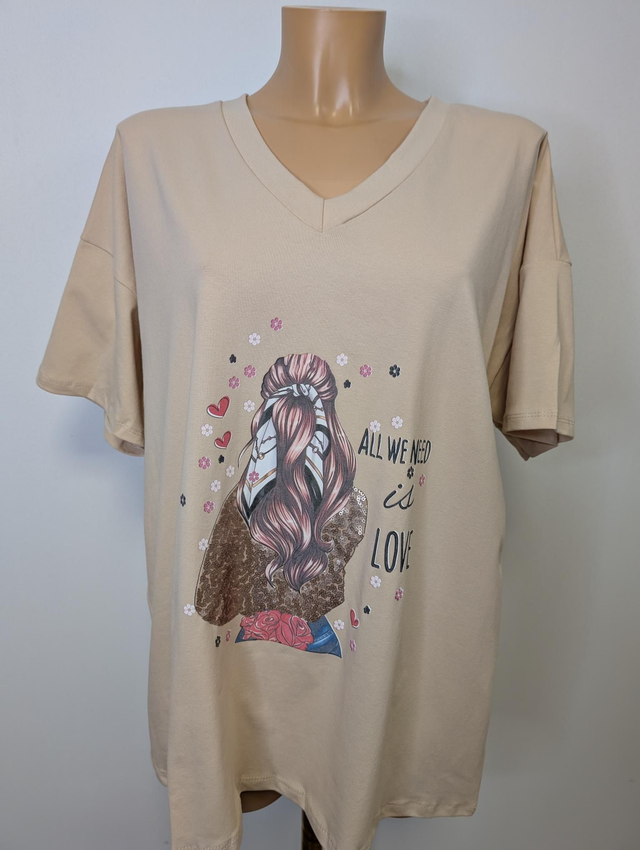 Tee-shirt MOM – Taille Unique 44/50 – Col V avec Motif Femme 👩✨